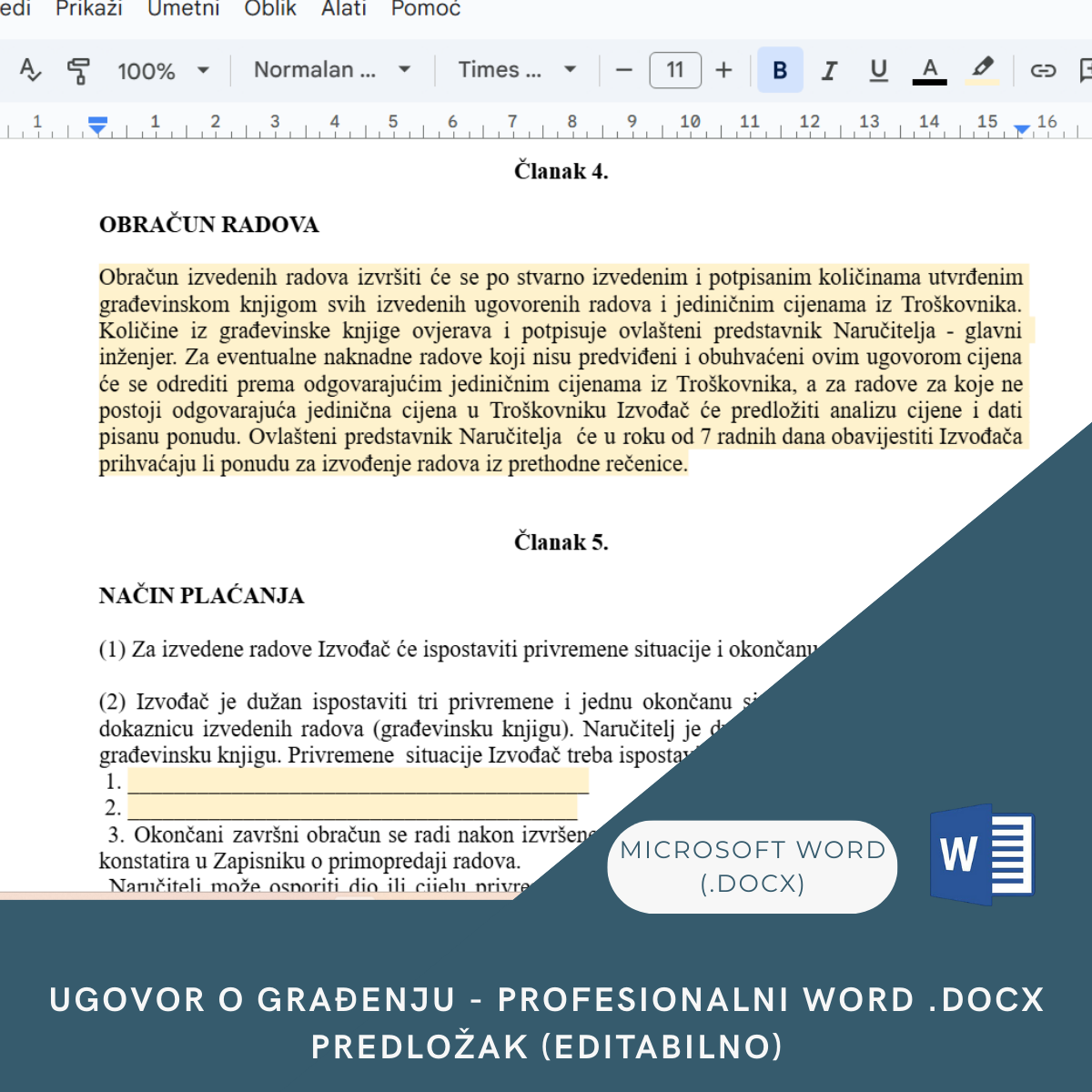 Ugovor o Građenju – Profesionalni Word Predložak (Editabilno)